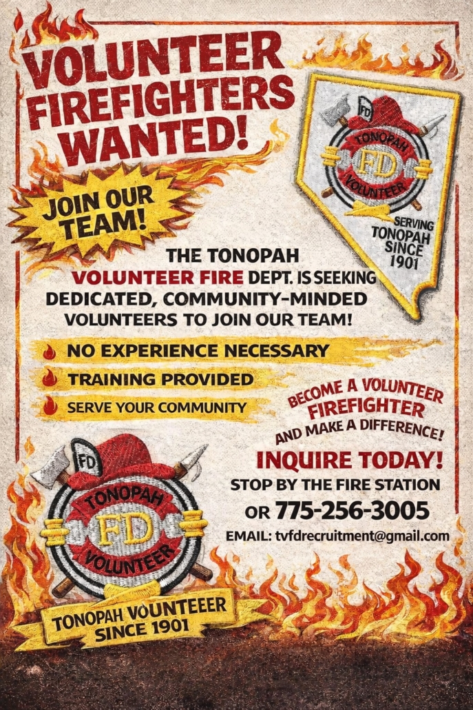 For more details, contact the Tonopah Volunteer Fire Department at (775) 316-2997 or email tonopahfire1123@gmail.com