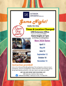 Join us for a fun and friendly Game Night at the UNR Extension Office in Tonopah!